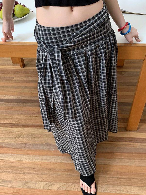 Hot Girl Contrast Color Strap Plaid Side Zipper Maxi Skirts