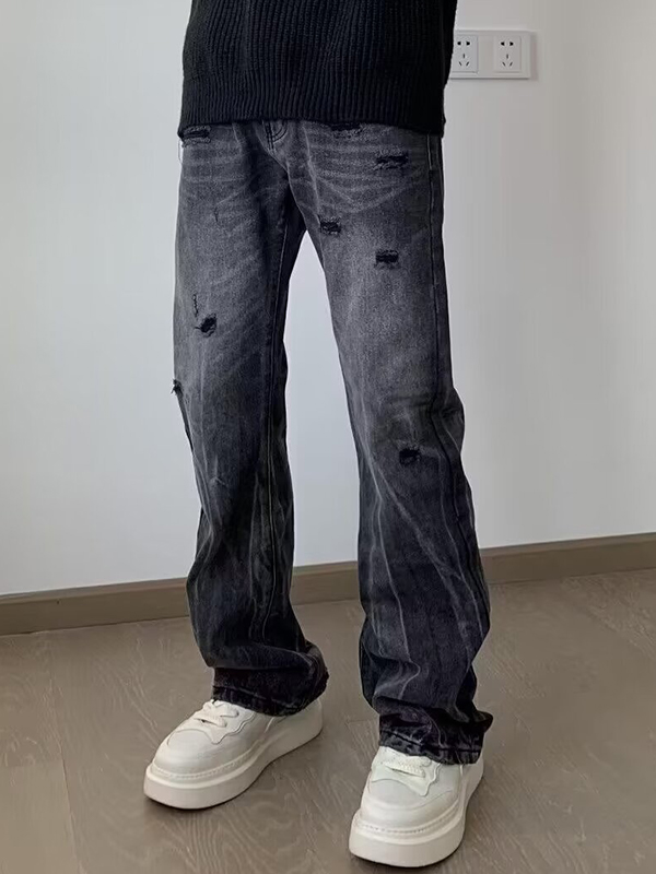 Washed Distressed Casual Loose Jeans