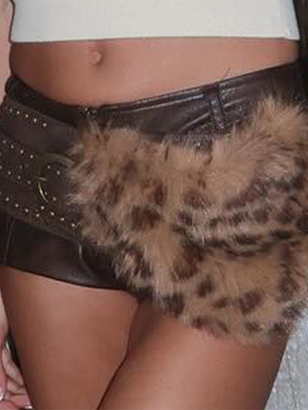 Vintage Leopard Print Fur Rivet Belt