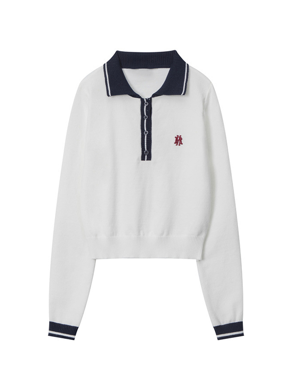 Preppy Letter Embroidery Lapel Neck Long Sleeve Knit