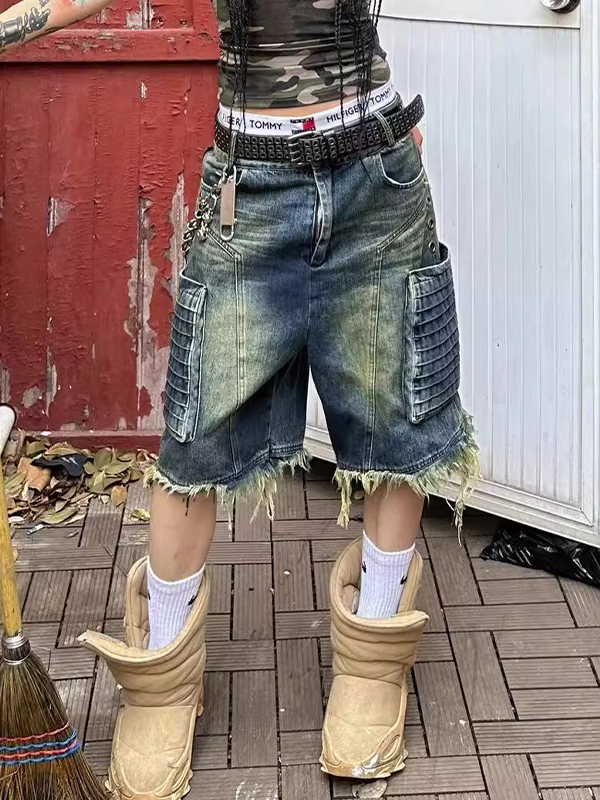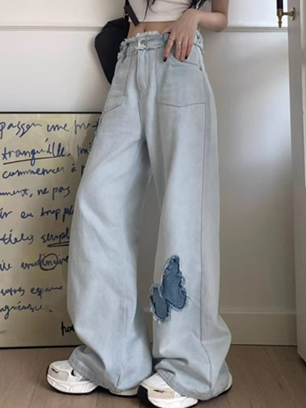 Wasteland Style Washed Pleats Slightly Flared Flare Jeans