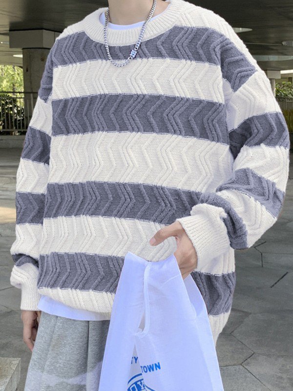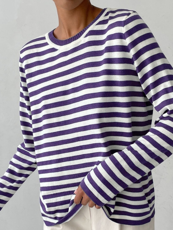Contrast Color Fake Two Piece Long Sleeve Knit