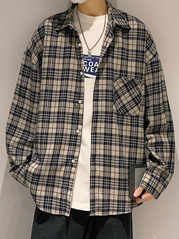 Men’s Contrast Color Plaid Long Sleeve Tee