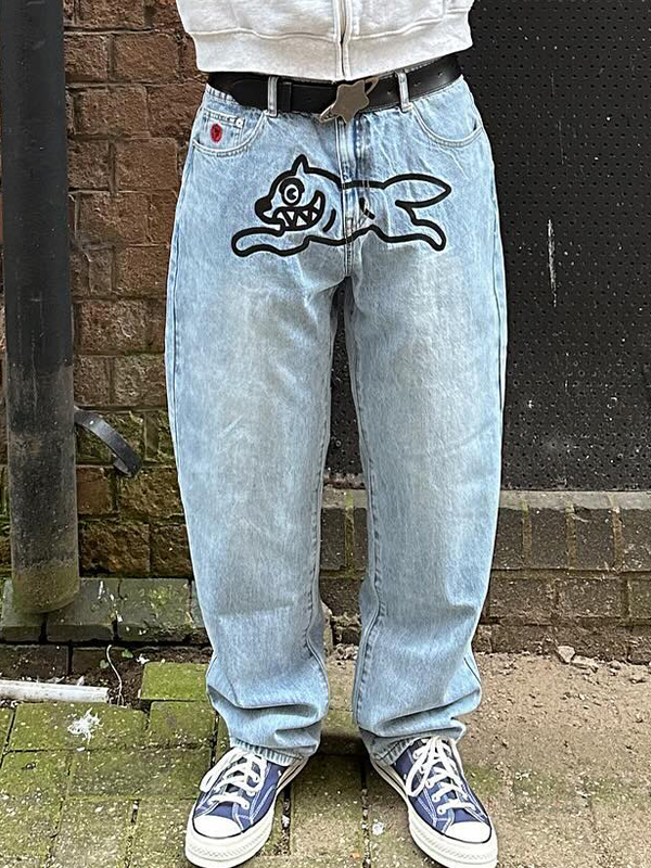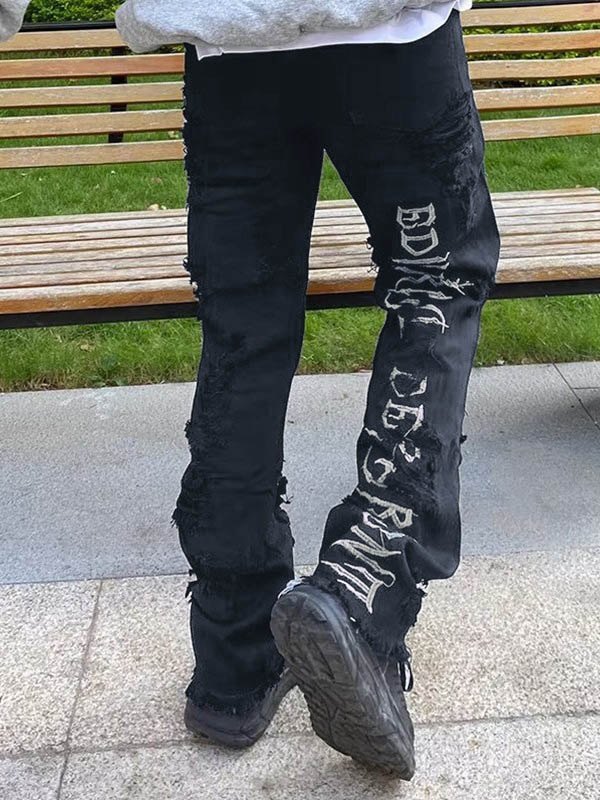Men’s Back Embroidered Distressed Straight Leg Jeans