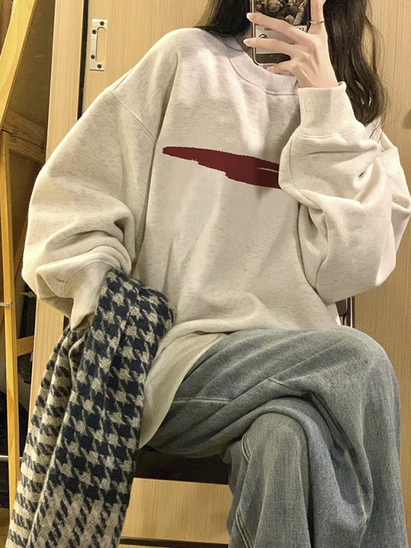 Cat Off Shoulder Oversized Long Sleeves Tee