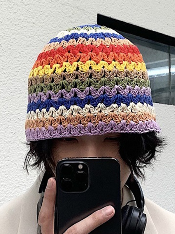 Hooded Striped Loose-Fitting Long-Sleeved Top
