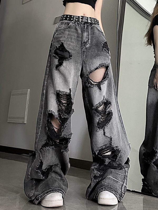 Washed Black Ripped Boyfriend Jeans