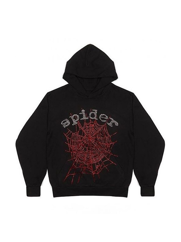 Men’s Fleece Street Spider Web Rhinestone Oversized Hoodie