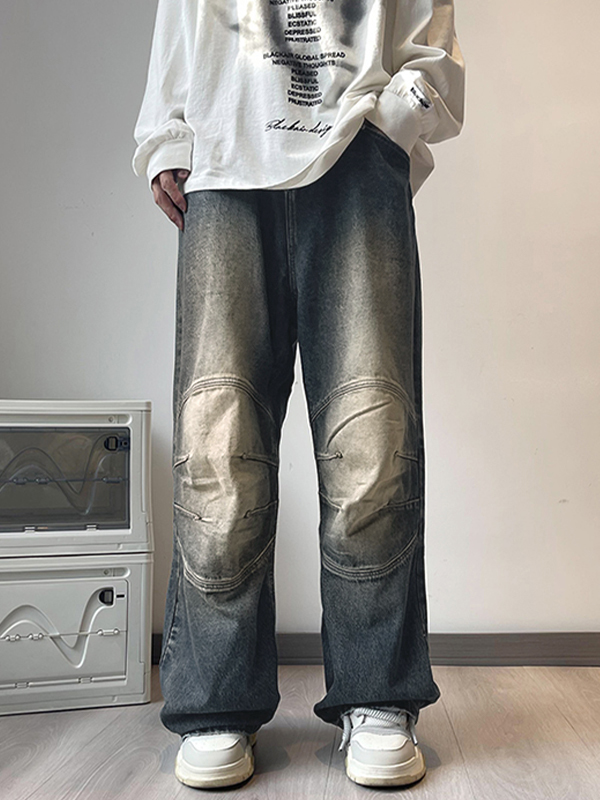 Men’s Washed Distressed Ruched Loose Jeans