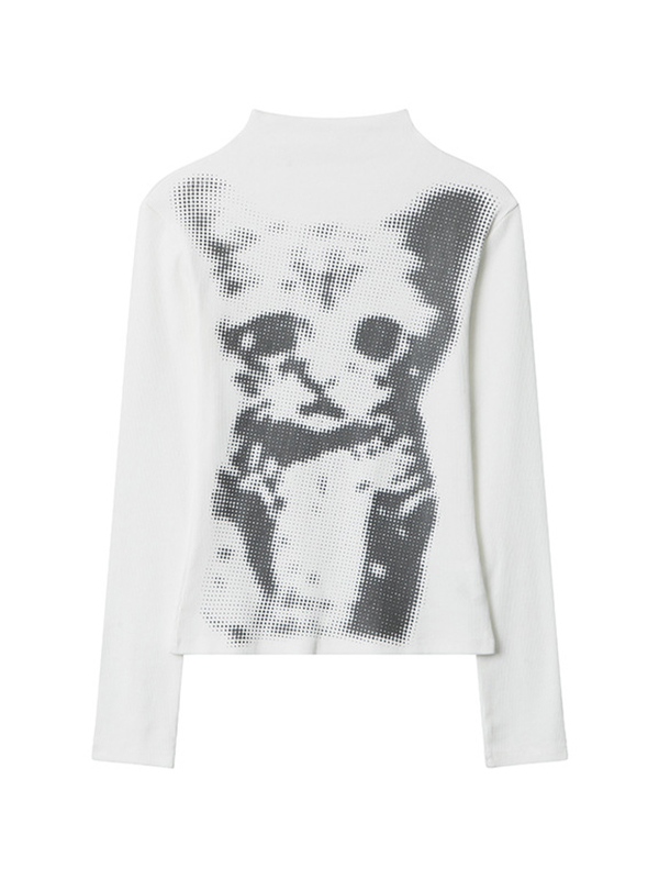 Gothic Print V Neck Long Sleeve Tee