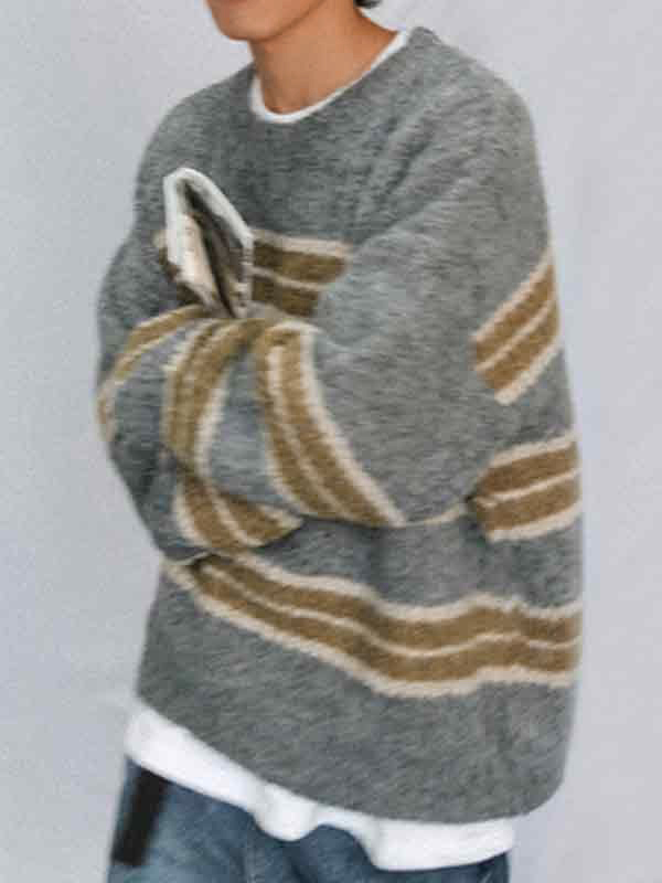 Men’s Contrast Color Stripe Cozy Knit Sweatshirt