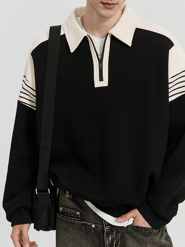 Men’s Contrast Color Half Zip Knit Sweatshirt
