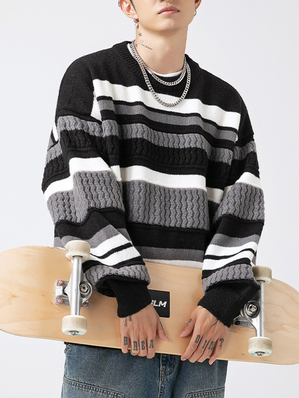 Hooded Striped Loose-Fitting Long-Sleeved Top
