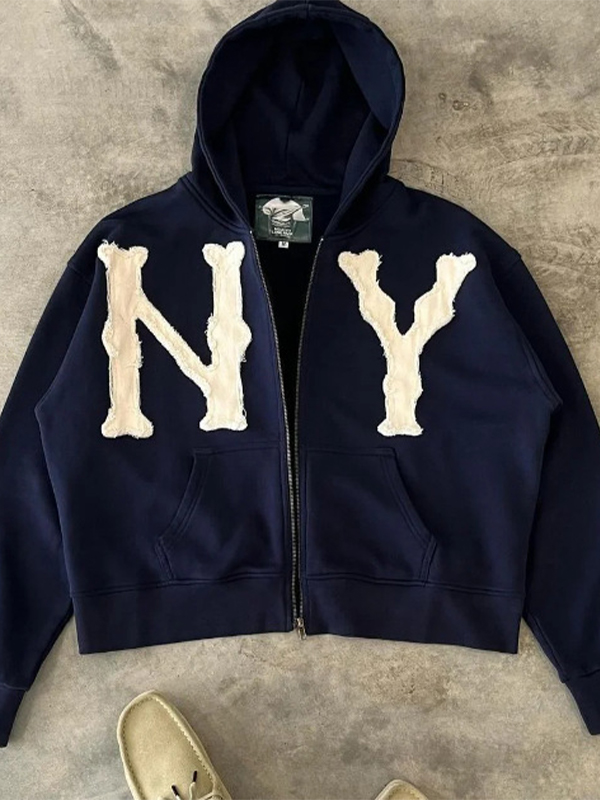 Embroidered Zip Up Cardigan Loose Hoodie