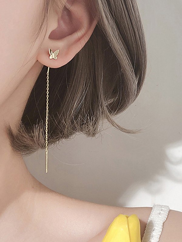 Butterfly Charm Tassel Chain Dangle Earrings