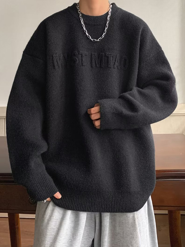 Men’s Hip Pop Letter Print Crew Neck Sweater