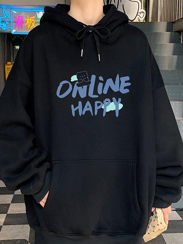Men’s Letter Print Kangaroo Pocket Oversized Hoodie