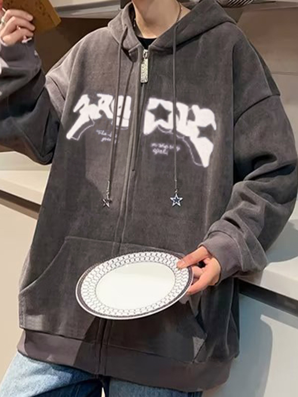 Men’s Street Graphic Print Full Zip Oversized Hoodie