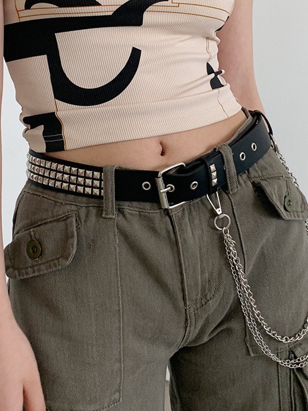 Detachable Chain Rivet Pu Leather Belt
