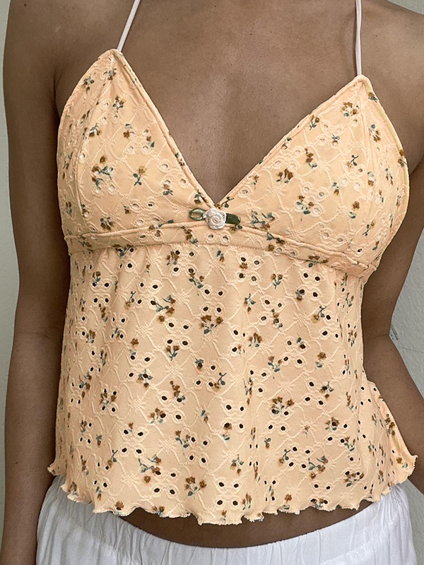 Cutout Ditsy Floral Print Tie Back Cami Top