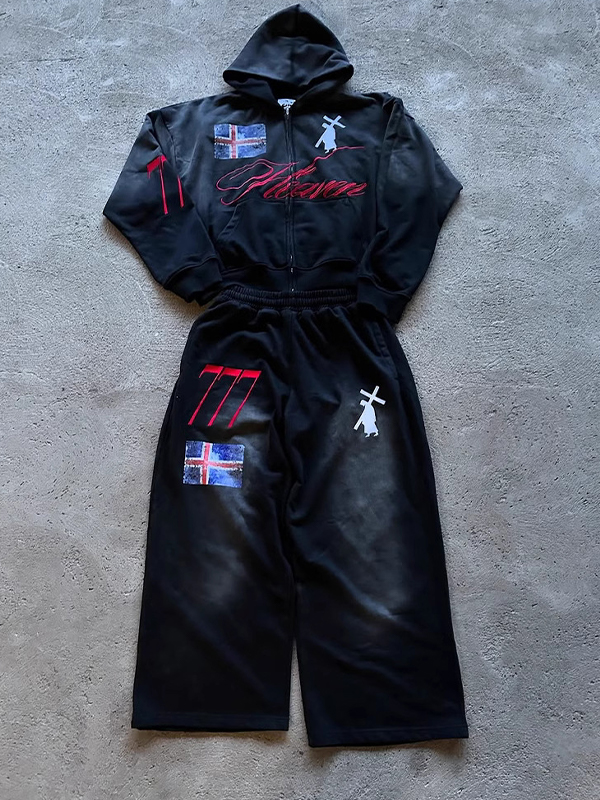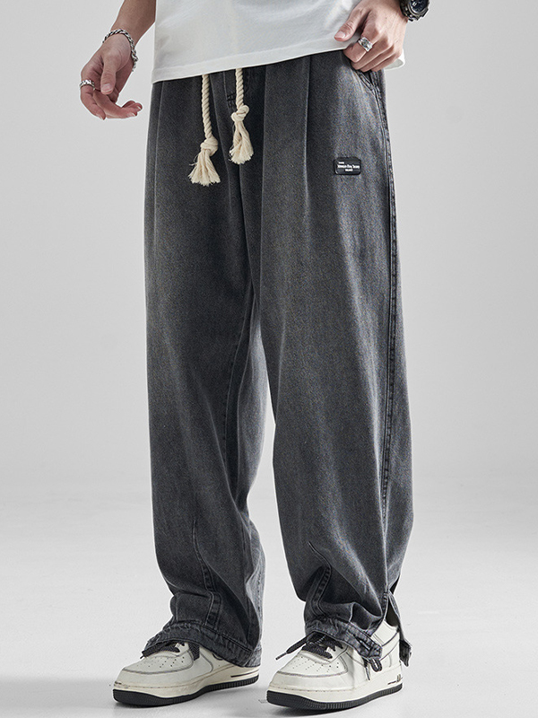 Vintage leopard print multi-pocket straps Cargo Jeans