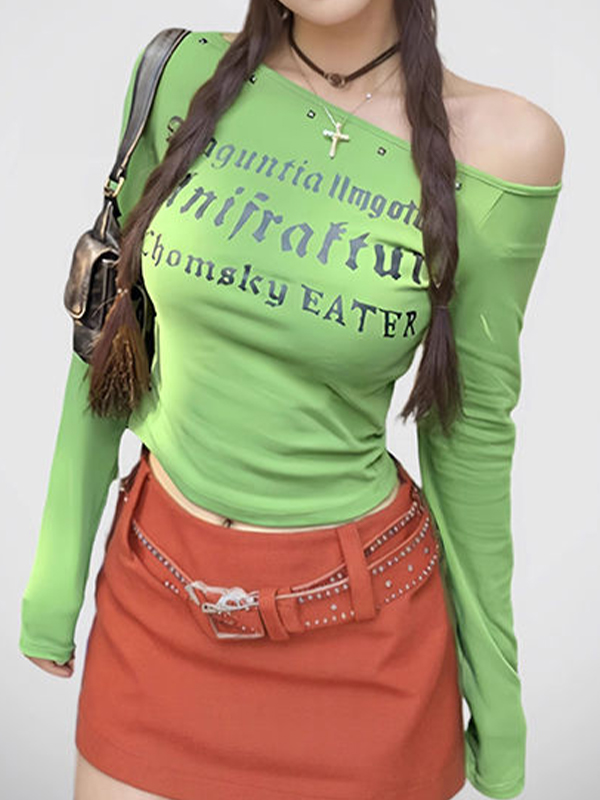 Y2K Wings Print Contrast Raglan Slim Short Sleeve Tee
