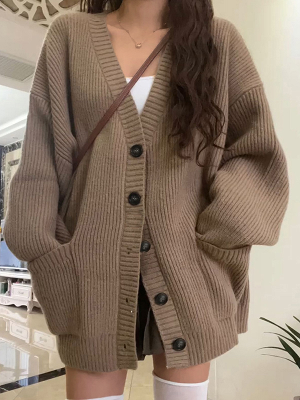 Solid Color Breasted Hooded Slim Long Sleeve Knit