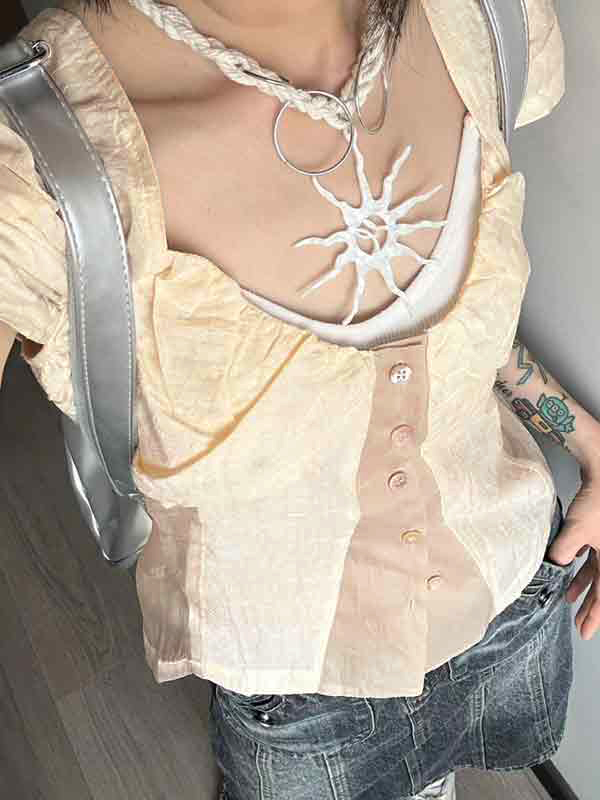 Retro Contrast Color Stitching Short Sleeves Shirts