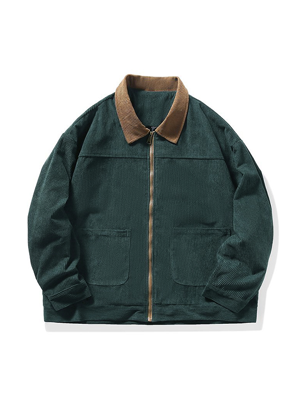 Men’s Vintage Corduroy Lapel Neck Zip Up Jacket