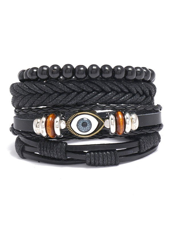 4pcs Boho Braided Pu Leather Bracelet Set