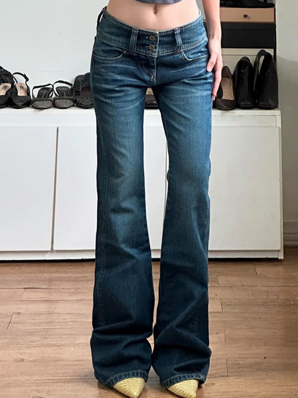 Wide Waist Buttoned Slim Fit Flare Jeans