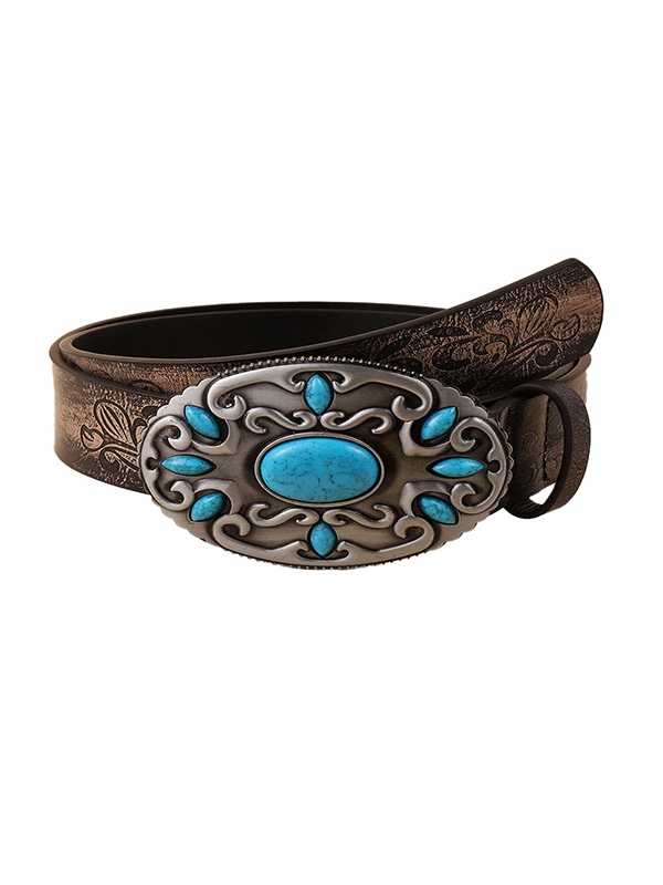 Tribal Engraved Blue Gem Decor Buckle Belt