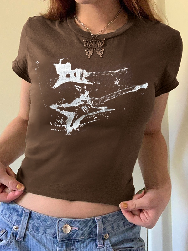 Vintage Brown Guitar Print Short Sleeve Tee