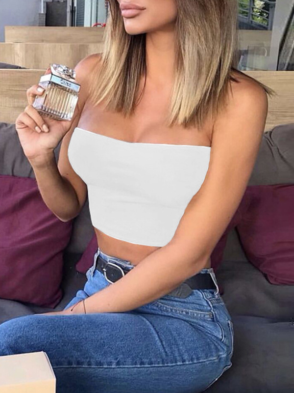 Plain Short Style Navel Exposed Bandeau Top