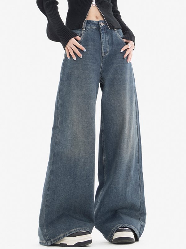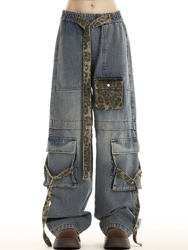Vintage leopard print multi-pocket straps Cargo Jeans
