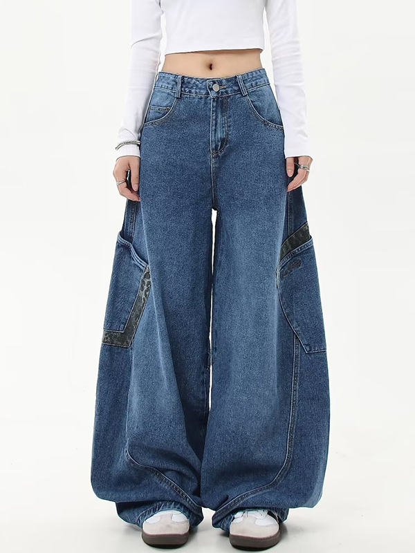 American Retro Leopard Print Stitching Boyfriend Jeans