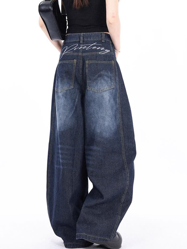 Men’s Distressed Interesting Flower Embroidery Loose Jeans