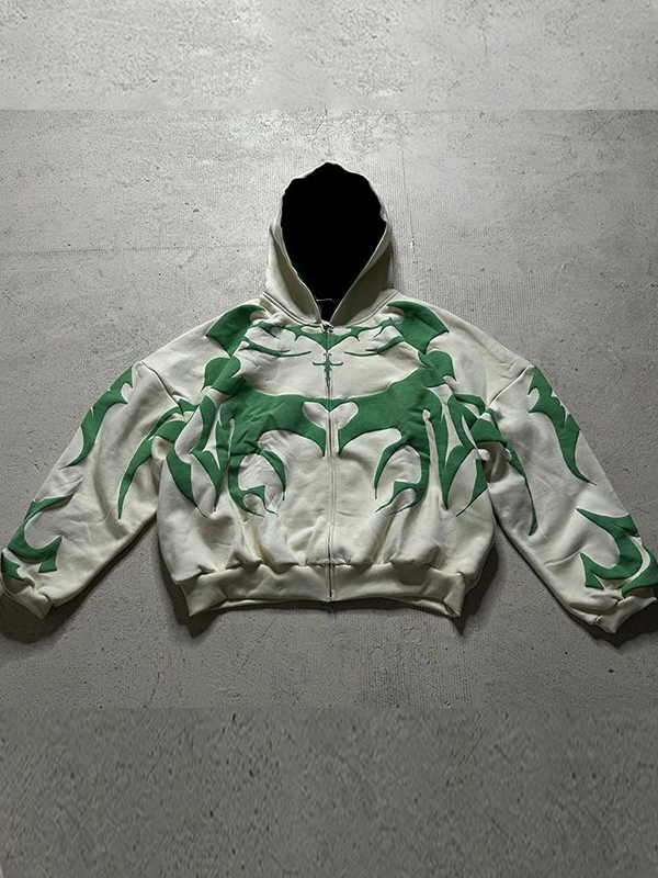Men’s Sleeve Star Print Zip Up Oversized Hoodie