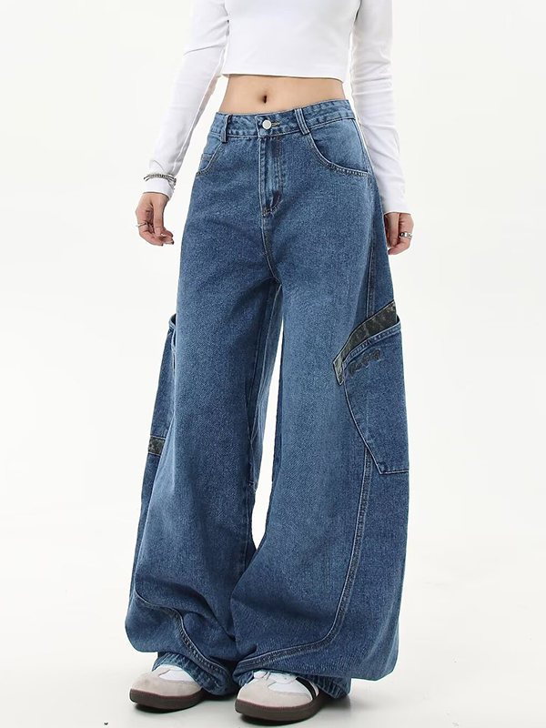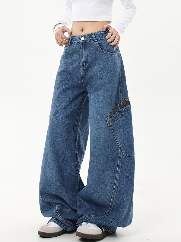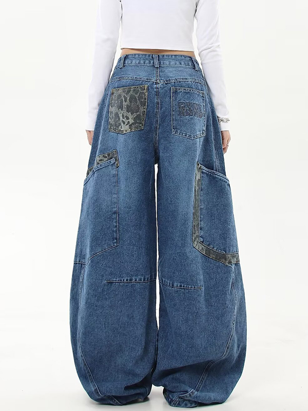 American Retro Leopard Print Stitching Boyfriend Jeans