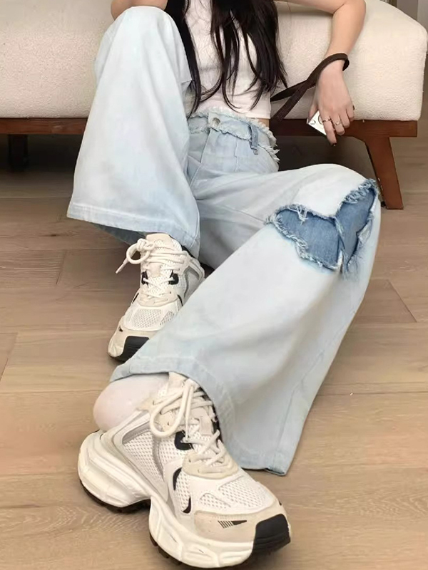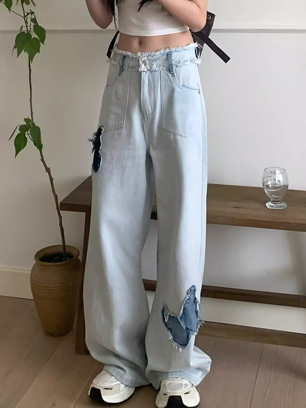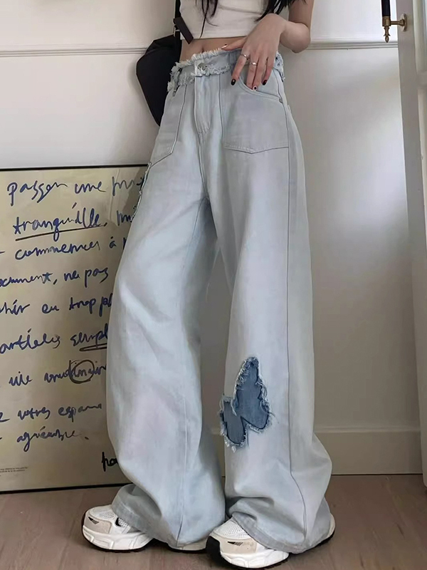 Blue Butterfly High Rise Wide Leg Jeans