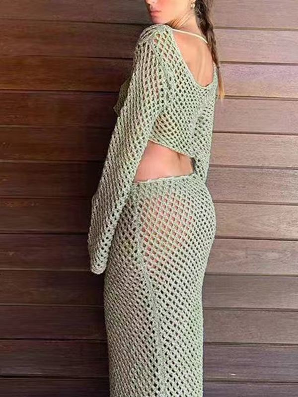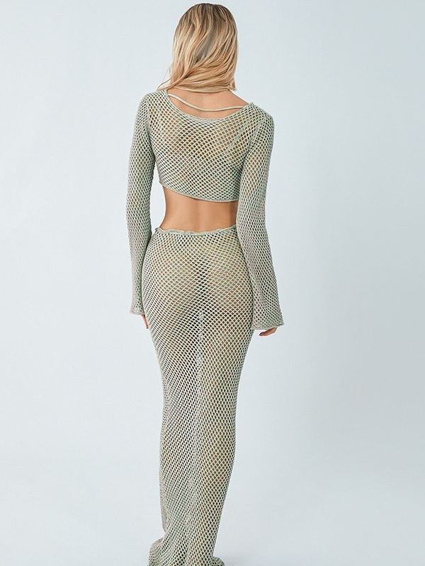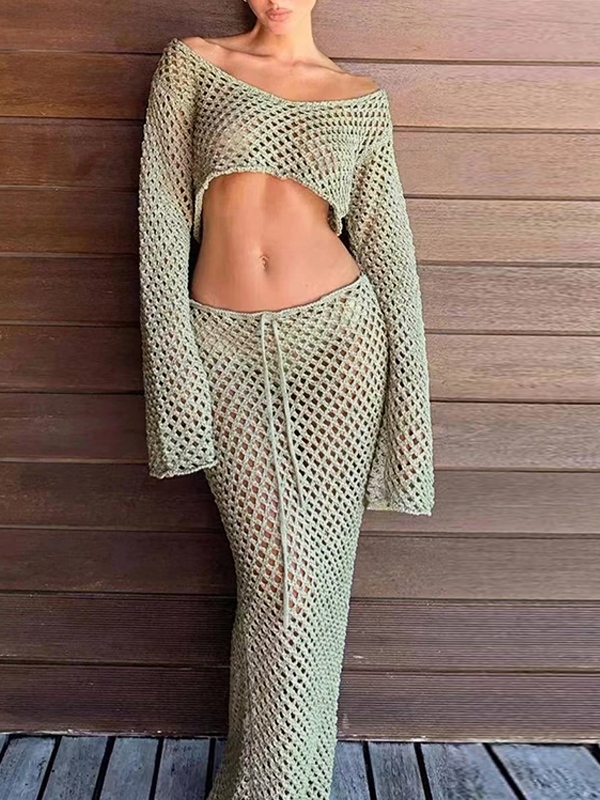 Cutout Cropped Long Sleeve Knit&Maxi Skirt Set