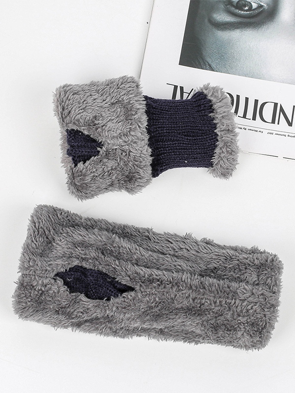 Fingerless Thick Warm Fleece Lining Knitted Gloves