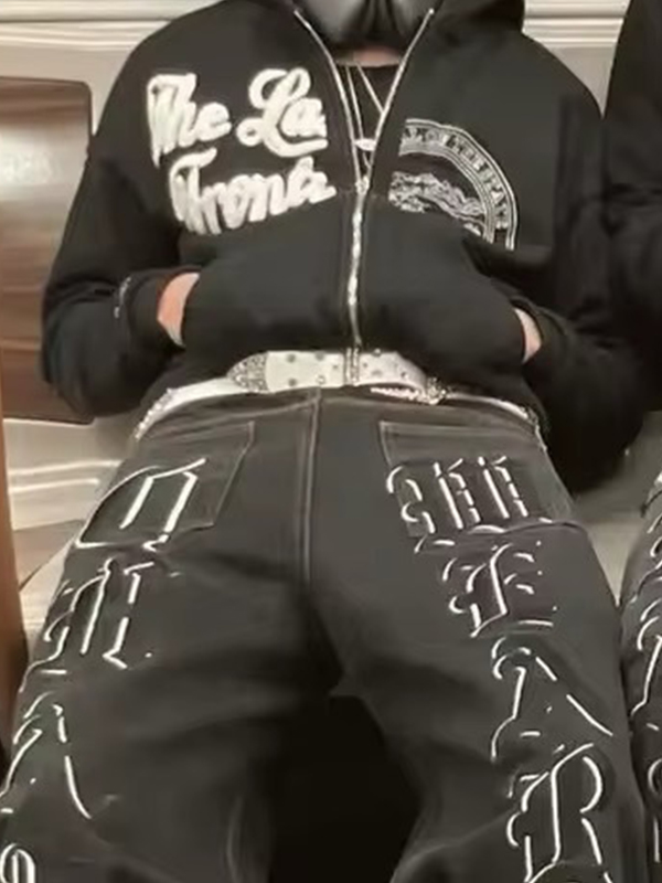Hip Hop Letter Graphic Print Loose Jeans
