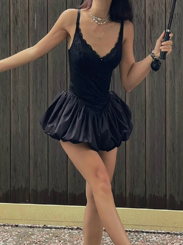 Lace Stitching V-Neck Low-Cut Pure Lust Mini Dresses