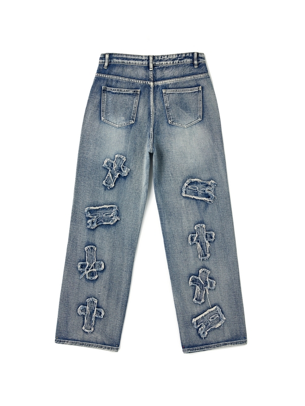 Letter Patch Faded Boyfriend Jeans