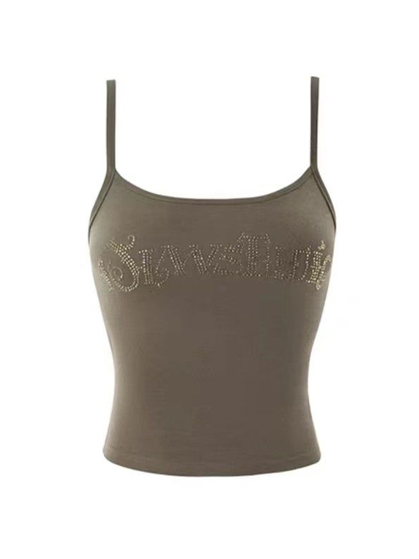 Letter Rhinestone Print Splice Cami Top