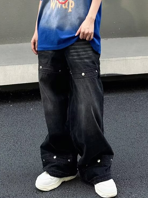 Loose Versatile Hip-Hop Straight Leg Cargo Jeans