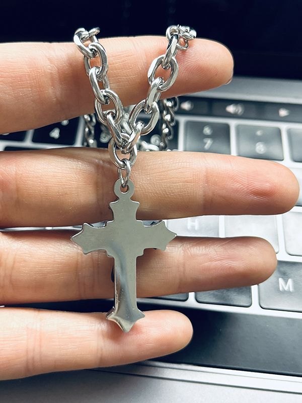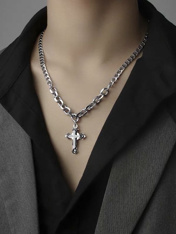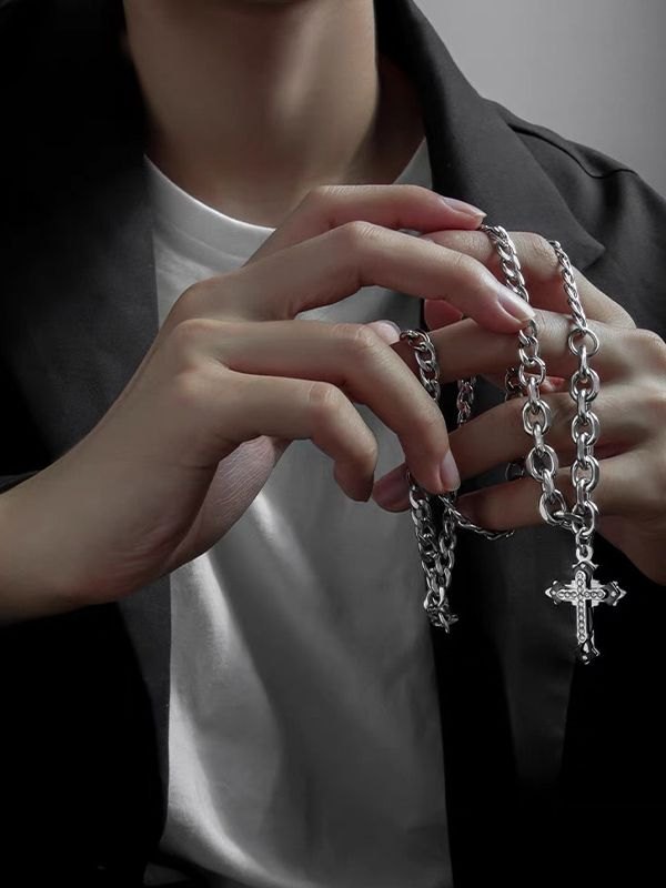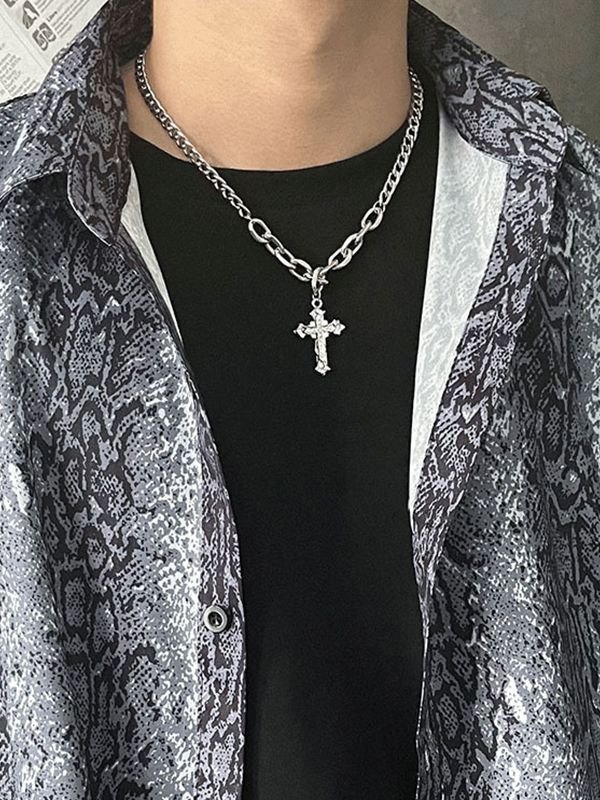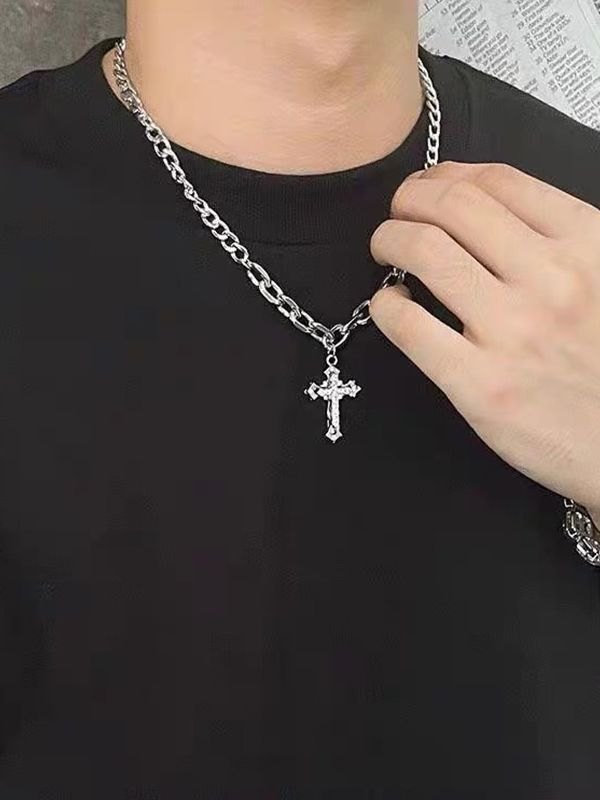 Men’s Rhinestone Cross Pendant Chain Necklace
