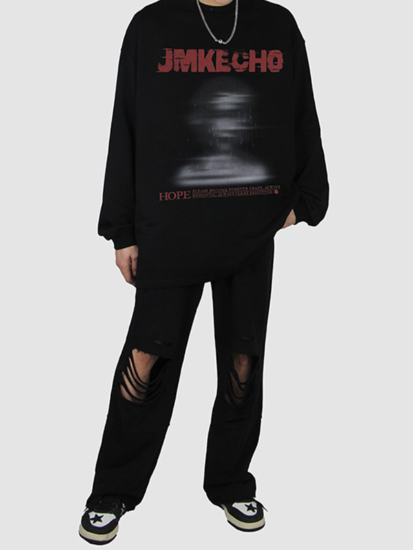 Men’s Street Blurred Portrait Print Wash Sweatshirt