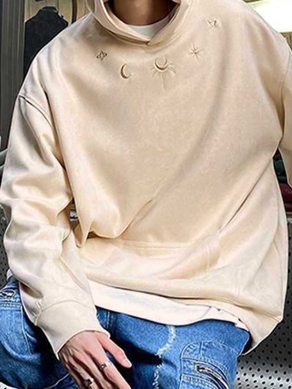 Men’s Suede Moon Star Embroidery Oversized Hoodie